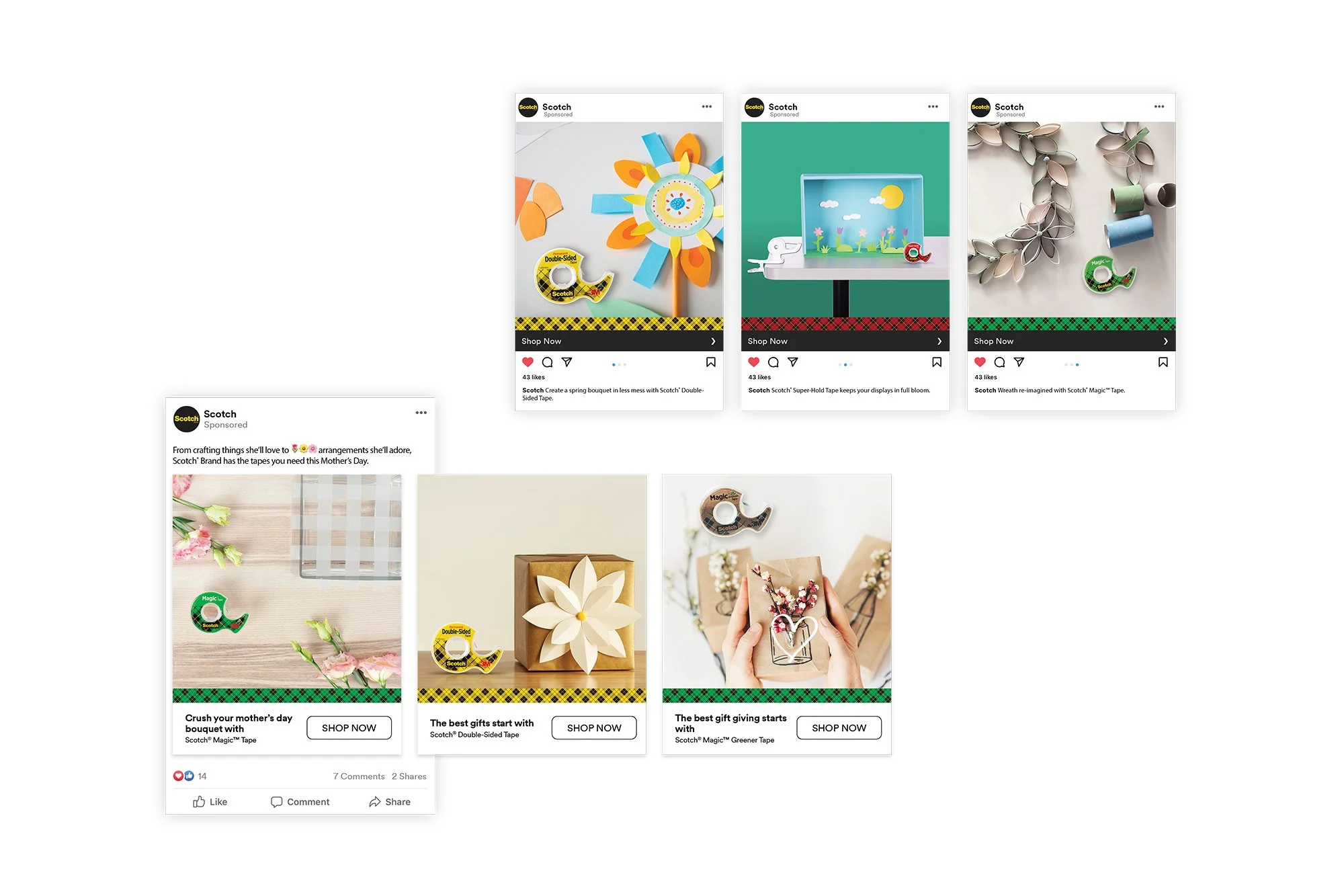 This is a mix of social content creation for various Scotch Brand tape products. We created various forms of social content and video through photoshoots, stock photography and retouching.
